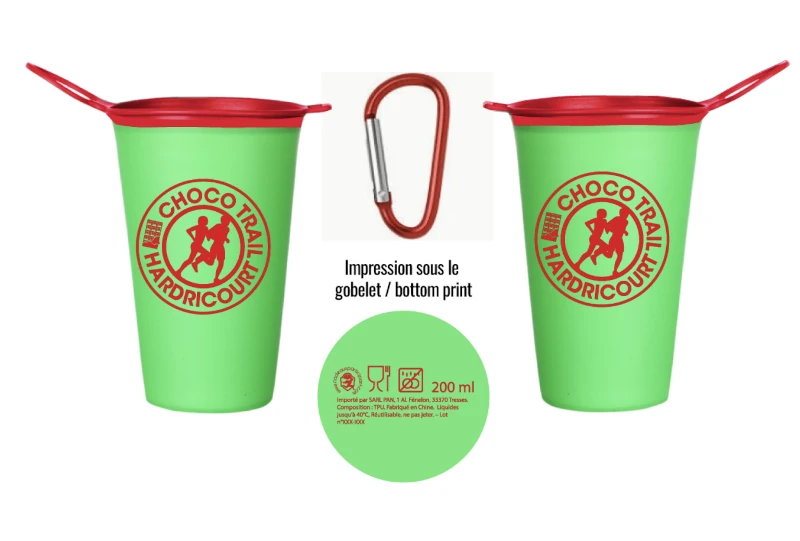 Lors de votre inscription, vous avez la possiilité d'acheter une écocup (gobelet souple avec mousqueton). Voir le modèle ici.