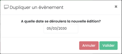 - Dupliquer un évènement afin de gagner du temps dans la création d'un nouvel évènement (les distances, tarifs et différents paramètres seront dupliqués, mais pas les participants bien sûr 😉)