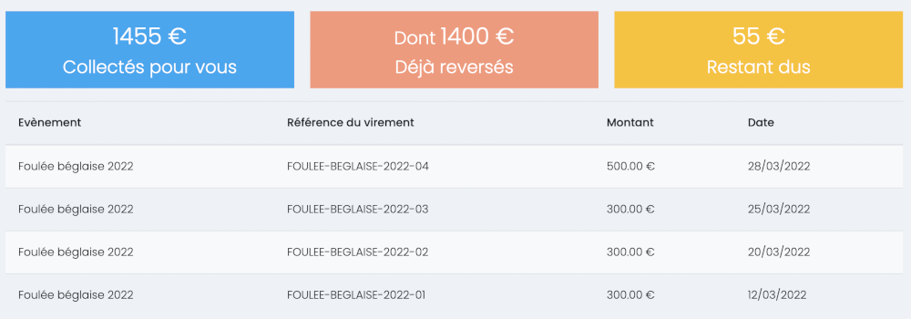 Les fonds qui vous sont dûs vous sont virés tous les 15 jours dès les premières inscriptions enregistrées.